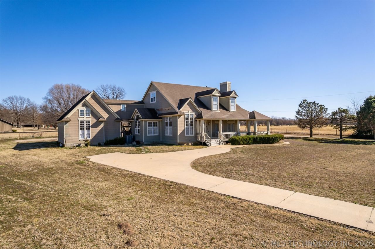 Most people think they have to choose: the wide-open freedom of the country or the convenience of city living. Usually, it's one or the other. But once in a long while, a property comes along that refuses to compromise. Situated on over 4.5 sprawling acres just moments from Haikey Creek Park, this remarkable home offers a lifestyle defined by scale and sunshine. From the moment you step inside, the narrative is one of light-soaring ceilings and walls of windows invite the outdoors in, while beautiful hardwoods ground the space with warmth. The inviting living room serves as the true heart of the home, anchored by a classic fireplace and flowing naturally into a kitchen built for gathering, complete with a large island and a sun-drenched breakfast area. The primary suite is a true sanctuary of its own. It offers direct access to the front patio for a seamless connection to the outdoors and features a rare, private screened-in porch. It's the perfect spot for a quiet morning coffee while watching the deer bound across the neighboring fields. The most compelling chapter of this home, however, is the upstairs. This isn't just extra square footage; it's a fully realized second living quarters. Complete with two bedrooms, two full baths, its own living room, and a kitchenette, it functions as a private apartment. Whether you need a dedicated mother-in-law suite, a space for long-term guests, or a massive home office retreat, the flexibility here is unmatched. Outside, the property offers the kind of room to breathe that is becoming harder to find, yet you're just minutes from city amenities. And for those whose vision is even larger? There are 22 additional acres available across the street, offering a once-in-a-generation opportunity to expand your footprint. This isn't just a house on acreage. It's a retreat, a family compound, and a rare piece of Oklahoma land ready for its next chapter.