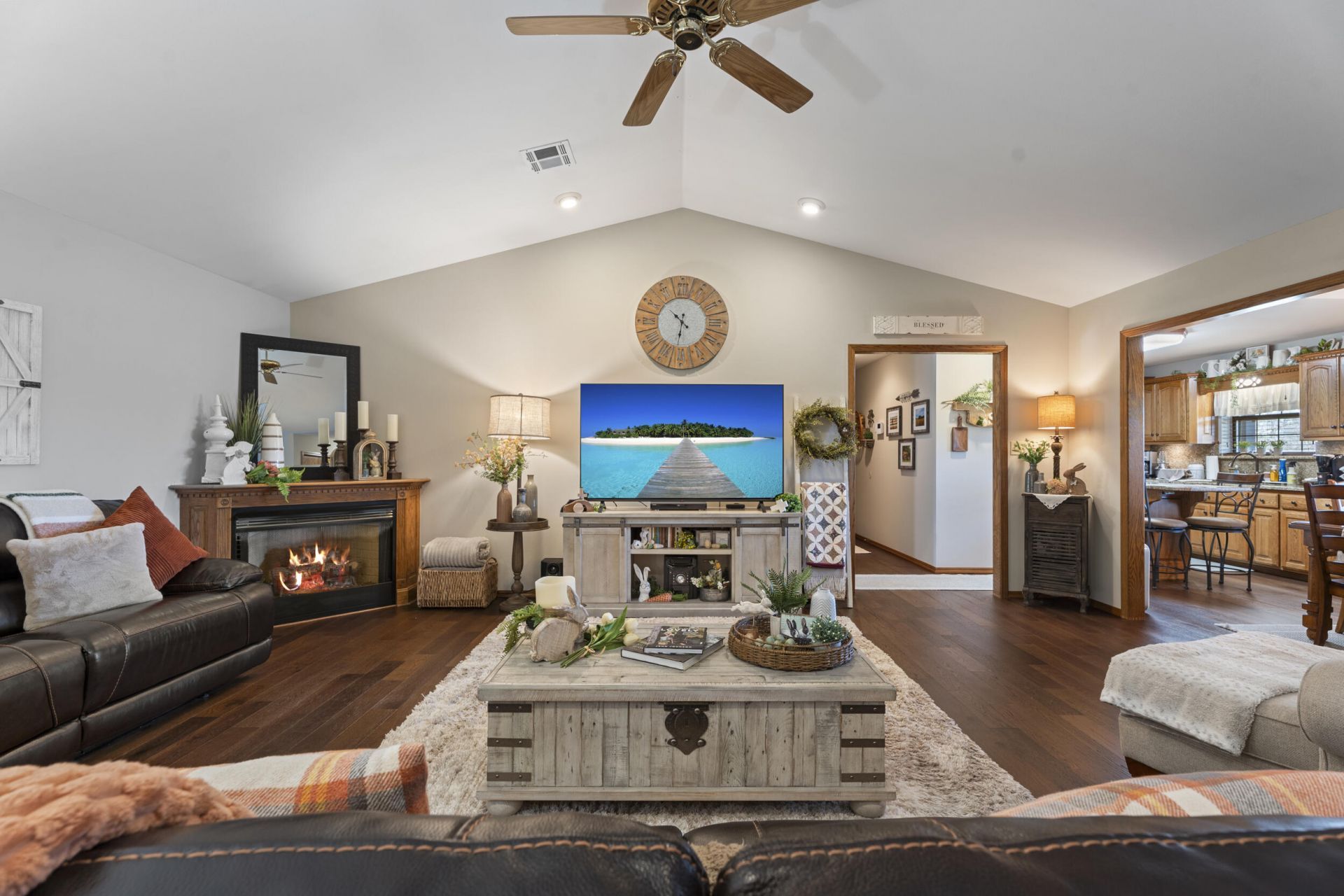 Welcome to your private country retreat, where comfort, functionality, & outdoor living come together seamlessly. Hidden gem sitting on 58+/- acres right in the heart of Miami! Country living at it's finest with all the amenities. ''Deer Meadow'' accurately describes what you see as you sit on the front porch & watch wildlife, most especially deer. Nestled among a stunning 130-tree pecan grove & a high-producing fruit orchard featuring pears, this property offers both beauty & productivity in a serene setting.The home features a spacious master suite complete with its own fireplace, creating the perfect place to unwind. Recent updates provide peace of mind, including a new roof (March 2022), new guttering & downspouts with leaf guards (May 2023), & a 5-ton HVAC system installed in 2018