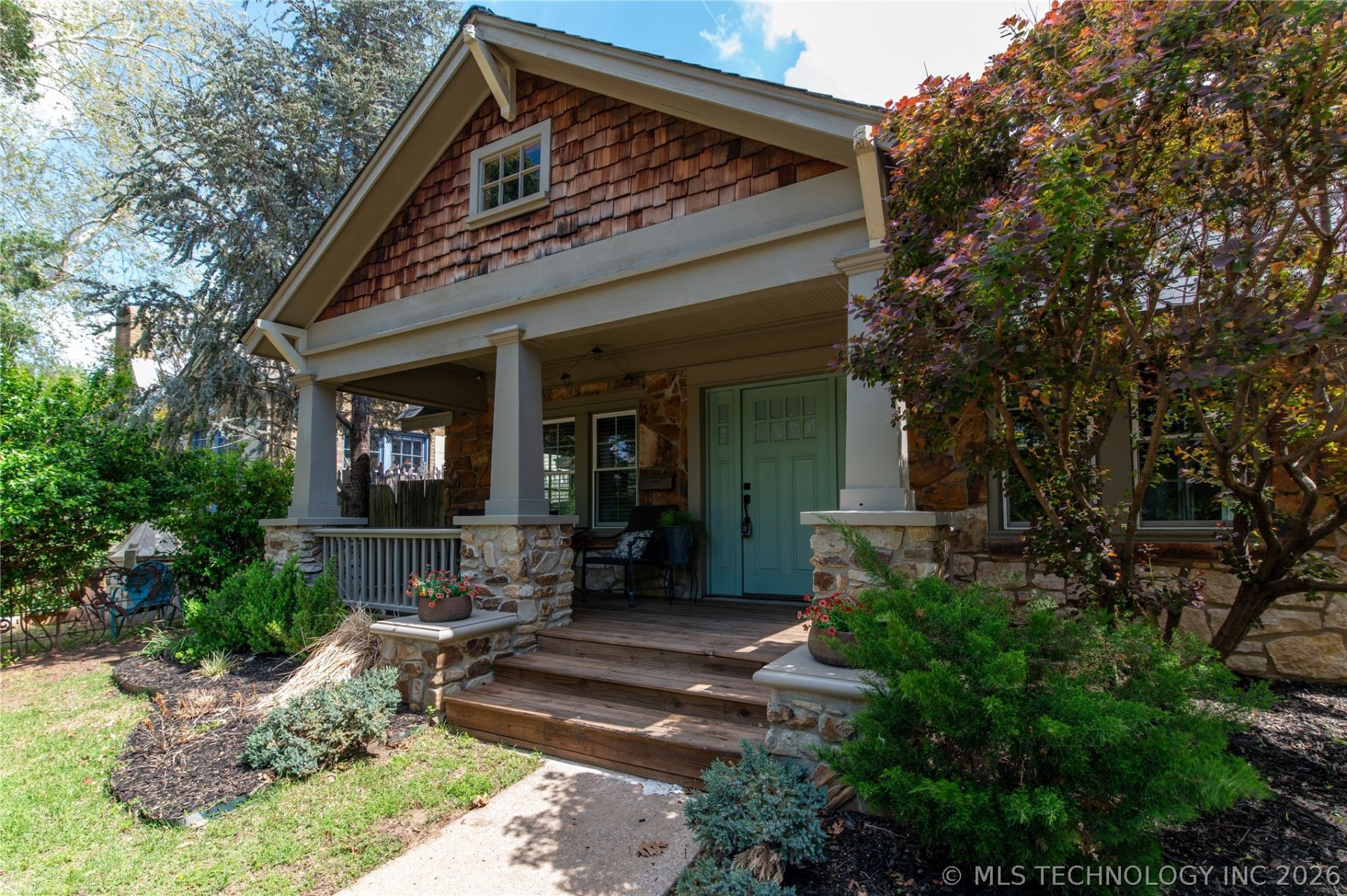 Fully Renovated Charming Single-Story in Tulsa's Florence Park. Luxurious living on a prime corner lot. This well kept home has been thoughtfully updated with quality features throughout. Enjoy 3 beds, 2 baths and 1,872 SqFt (per AP) with beautifully refinished natural hardwood floors, new roof, vinyl windows, farmhouse style features, a wide open concept layout, shiplap dining accent wall, and an abundance of can lighting. Great curb appeal with a classic front porch. Luxurious kitchen has beautiful granite counters, large center island, farmhouse sink, stainless steel appliances, double ovens, and built-in gas cooktop. Primary suite has wood burning fireplace, vaulted ceilings, completely updated tiled shower and free standing bathtub. Rare large backyard space, storage shed and Tesla charger. Close to Cherry Street dining, Utica Square shopping, downtown Tulsa, and easy highway access. You don't want to miss this one!