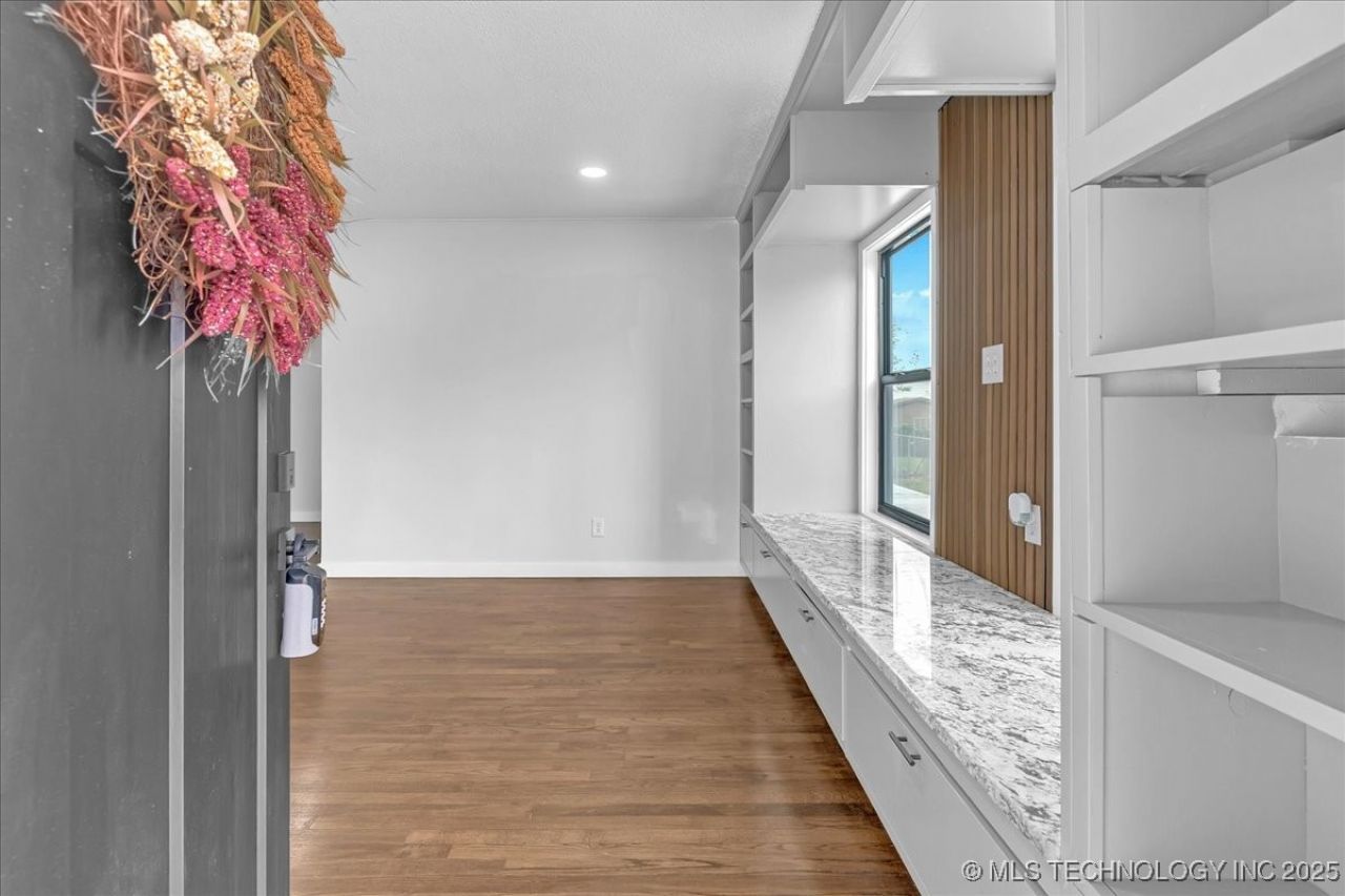 This inviting Craftsman-style home has been lovingly owned by the same family for nearly 30 years and has just received a tasteful renovation inside and out. Sitting on a crawl space with approximately 1,262 square feet per appraisal, the home beautifully blends original charm with modern updates. The refinished original hardwood floors preserve its character, while new improvements include a roof, gutters, Energy Star windows, kitchen cabinets with granite countertops, stainless steel range/oven, dishwasher, microwave, hot water tank, and concrete driveway. The fully fenced yard features a detached two-car garage and storage shed for ample space, plus a storm cellar that can be accessed from both inside and outside of the home for added peace of mind. Conveniently located within minutes of schools, Highway 244, Tulsa International Airport, White River Fish Market, the Tulsa Zoo, and more, this move-in ready property offers the perfect combination of comfort, character & convenience.