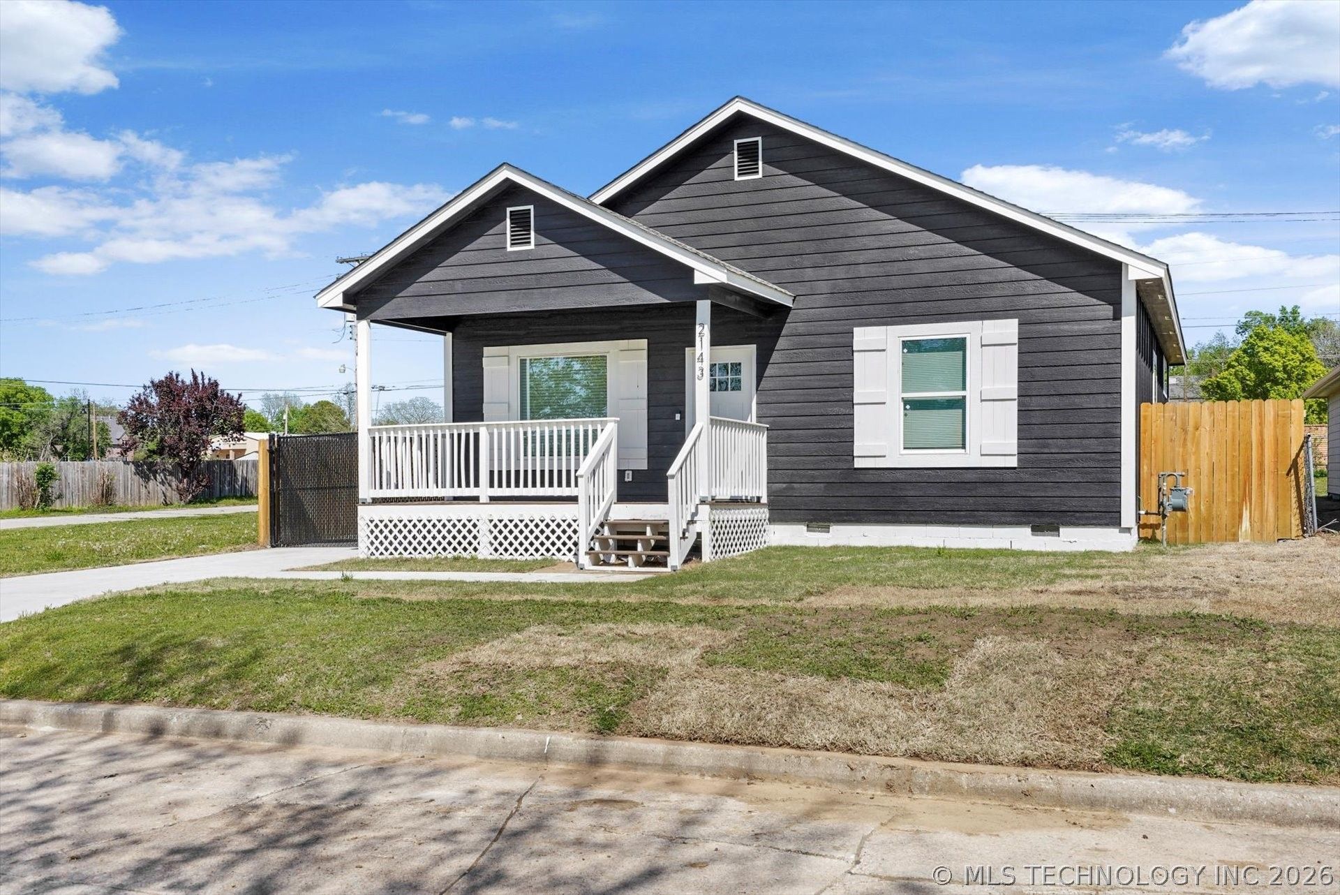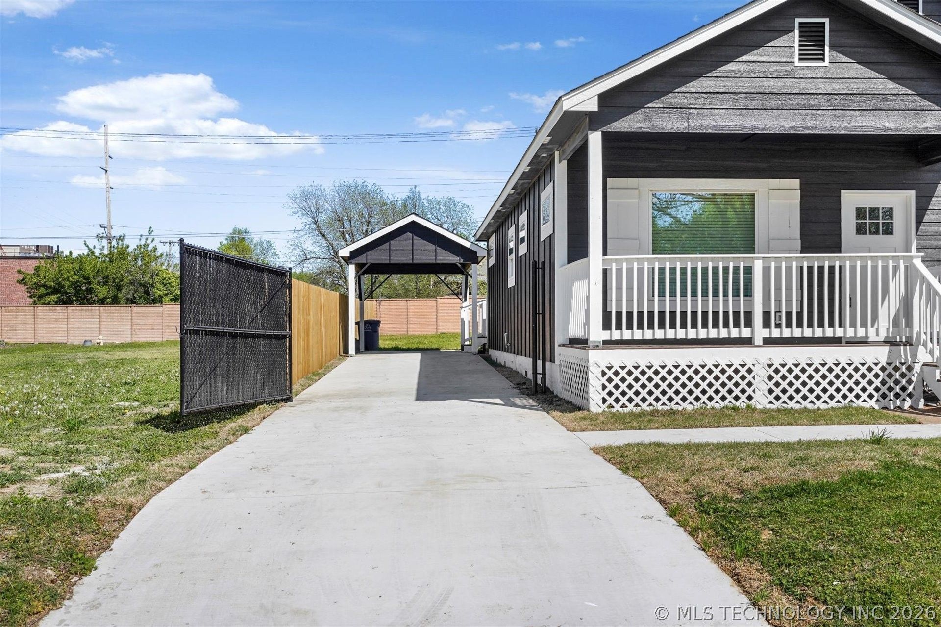 Fully remodeled, stunning Lacy Park home for rent! Completely rebuilt and replaced in 2024 - roof, electric, plumbing, hvac, tankless water heater, windows, foundation, siding, cosmetics, driveway, decks, carport with gate, etc. This beautiful 3 bed, 2 bath home offers modern living at its finest, less than 10 minutes from downtown Tulsa. Features a thoughtful, open floor plan in the living room and kitchen with natural light throughout. Luxurious kitchen includes custom soft-close cabinetry, and a large granite kitchen island with electric cooktop, hood vent and bar seating. Also comes with stainless steel appliances including a refrigerator! Primary has a spacious bathroom with walk-in shower and walk-in closet. Luxury vinyl plank throughout, with tile bathrooms - no carpet! Separate laundry room next to kitchen which opens to a back deck, carport, and a huge backyard - perfect for entertaining. Washer/dryer included!