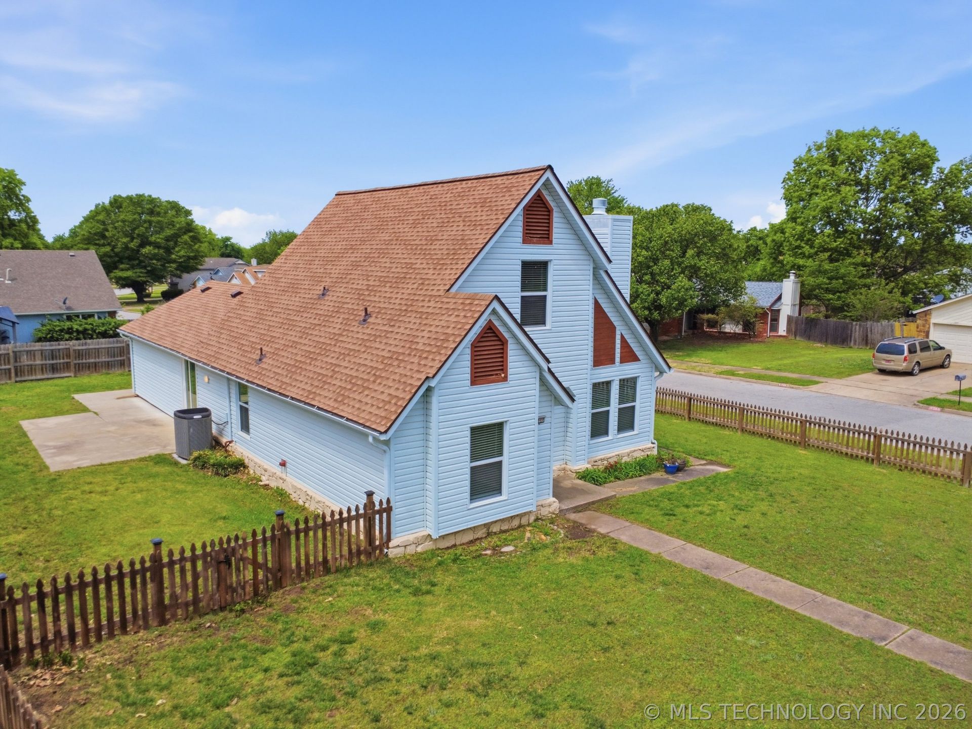 Charming fully remodeled, corner lot, cottage style home with a decorative picket fence around the front yard. The kitchen features custom solid wood cabinetry, butcher block counters, a vaulted ceiling with wood accent, stained concrete floor, and a picture window. The home has LED can lighting, new brand name Thermal Window insulated windows, vaulted ceilings both downstairs and upstairs, solid wood staircase, a reading nook under the stairs, a bench seat under a bedroom window, a relaxing living room with fireplace and soaring vaulted ceiling. The Master suite and master en-suite bathroom will spoil you and connects to the separate laundry room for added convenience. Fiber optic internet is new to the neighborhood. The roof was replaced 1 year ago. Home is offered with a home warranty. Brand new insulated garage door and new overhead door opener installed this week. The stunning full remodel done just 9 months ago included the new roof, carpet, custom solid wood cabinetry, counter tops, master suite bath, all new windows and sliding patio door, LED recessed lighting, interior paint, plumbing fixtures, ceiling fans, window blinds, and more. This is a must see home with this interior and large yard.